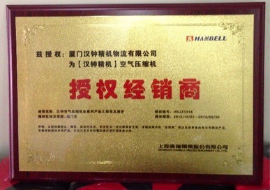 2013年10月份臺(tái)灣漢鐘精機(jī)授權(quán)廈門(mén)漢鐘精機(jī)有限公司--總代理經(jīng)銷(xiāo)權(quán)-品牌代理
