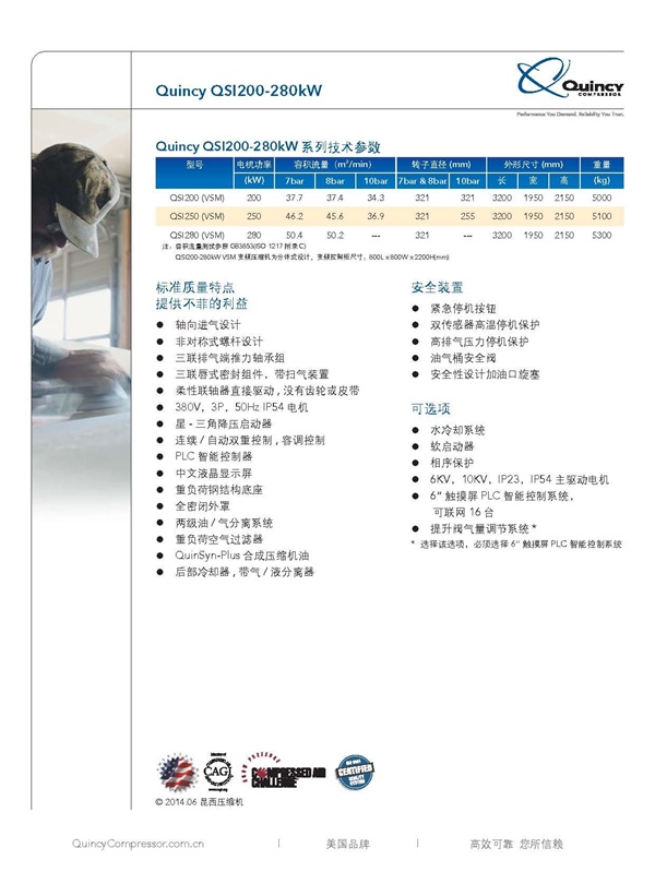 昆西QSI系列螺桿式空氣壓縮機(jī)200-280kW